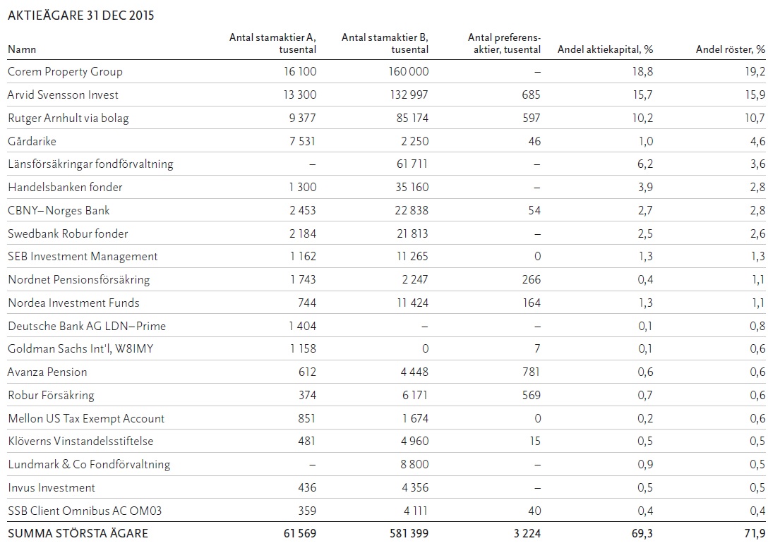 Bolaget äger ca 415 fastigheter om ett värde på 35 miljarder sek. Fastighetsbeståndet sträcker sig ifrån Sollefteå i norr till Malmö i söder. Bolagets aktie står för närvarande i 10,69 kr.